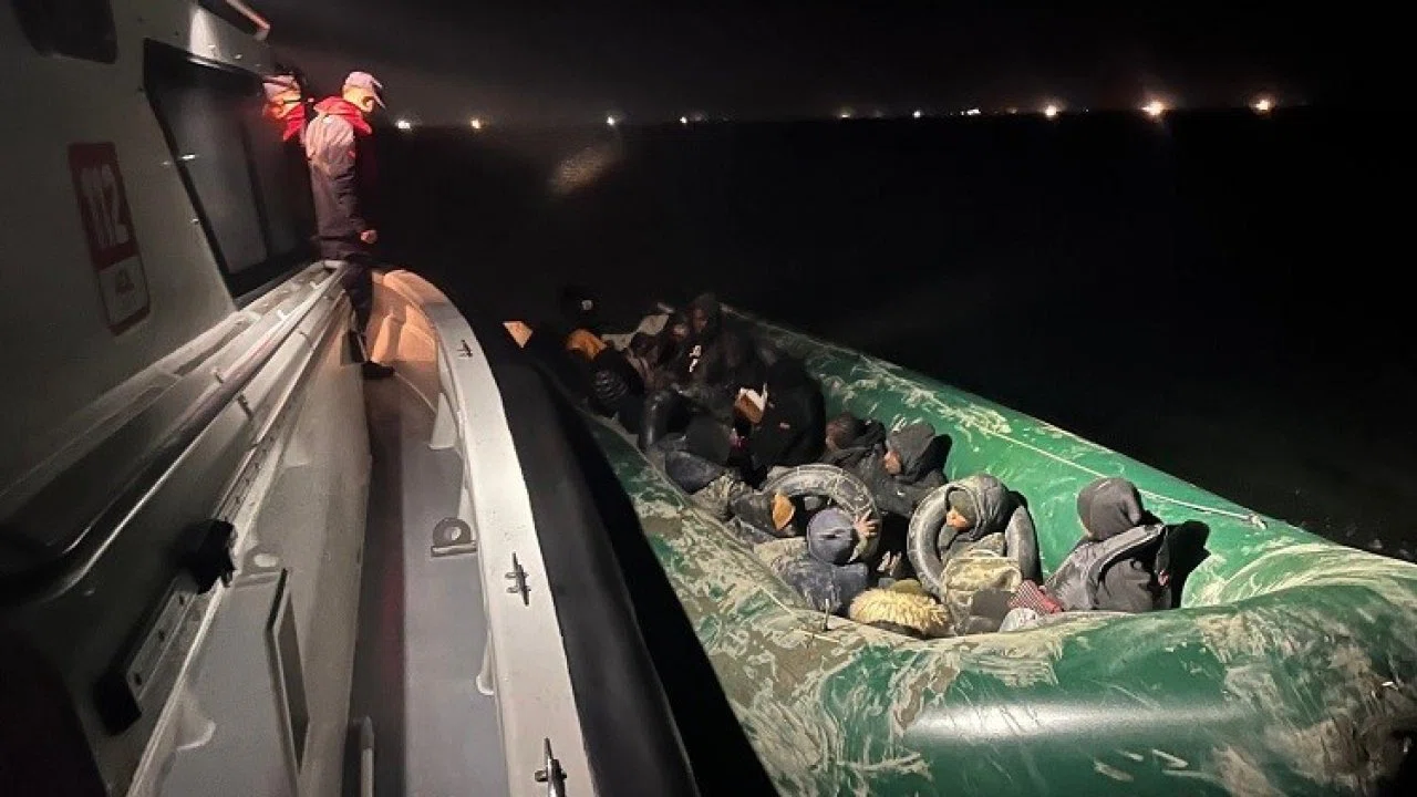 Aydın’ın Didim ilçesi açıklarında 1’i çocuk 18 düzensiz göçmen ile birlikte 4 göçmen kaçakçısı şüphelisi yakalandı.