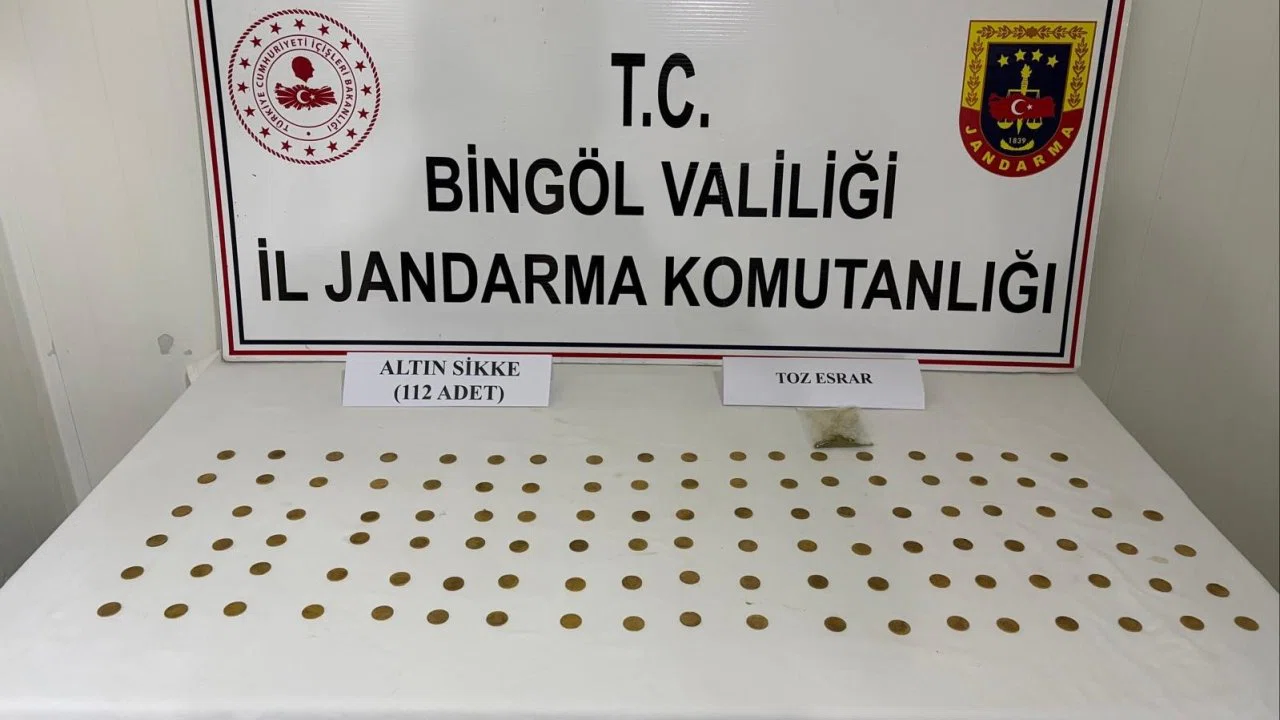 Bingöl İl Jandarma Komutanlığı ekipleri, 27 Şubat - 06 Mart 2026 tarihleri arasında Asayiş, TEM, KOM, Narkotik ve Siber Suçlarla Mücadele kapsamında 25 olaya müdahale etti. Aynı zamanda kesinleşmiş hapis cezası ile aranan şüphelilere yönelik çalışmalar yapıldı. Son bir hafta içerisinde yapılan çalışmada 5’i kesinleşmiş hapis cezası olmak üzere toplam 38 şüpheli yakalandı. Çalışmalarda 112 adet altın sikke olduğu değerlendirilen obje, 320 adet sentetik hap, 85 gram esrar maddesi, bazı miktarlarda metamfetamin ve kenevir tohumu ele geçirildiği bildirildi.