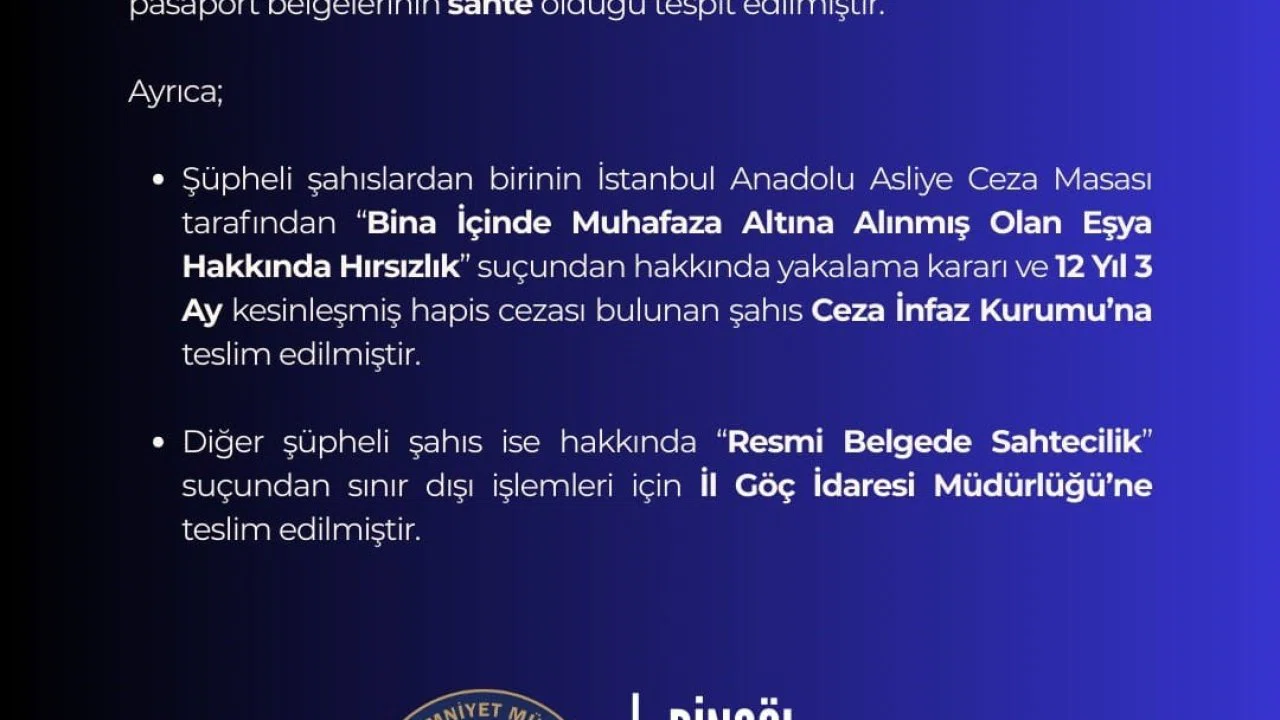Hakkında kesinleşmiş hapis cezası bulunan şüpheli cezaevine teslim edilirken, diğer şüpheli şahıs ise sınır dışı işlemleri için İl Göç İdaresi Müdürlüğü’ne teslim edildi.