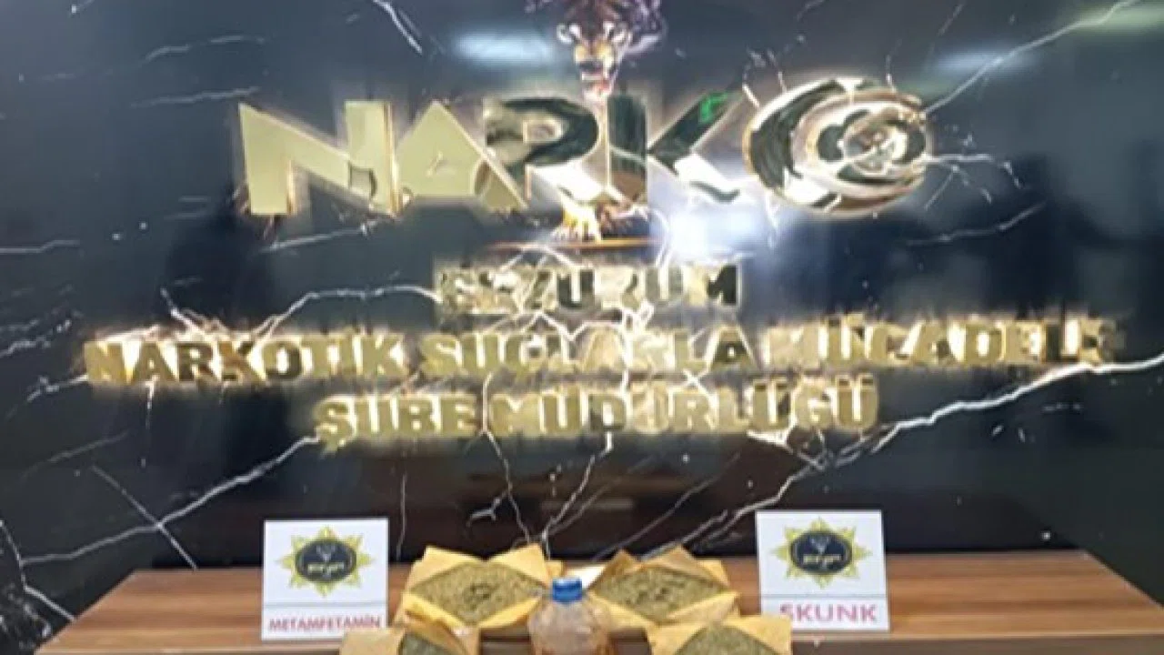 Erzurum’da düzenlenen operasyonda 7 kilo 300 gram skunk ile 2 kilo 150 gram metamfetamin ele geçirildi, 3 şüpheli tutuklandı.
