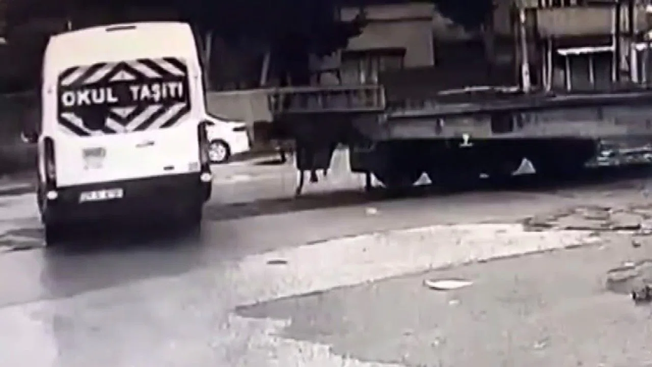 Gaziantep’in İslahiye ilçesinde hemzemin geçitten geçen okul servisine tren çarptı. Kaza anı güvenlik kamerasına yansırken servisin boş olması faciayı önledi.
