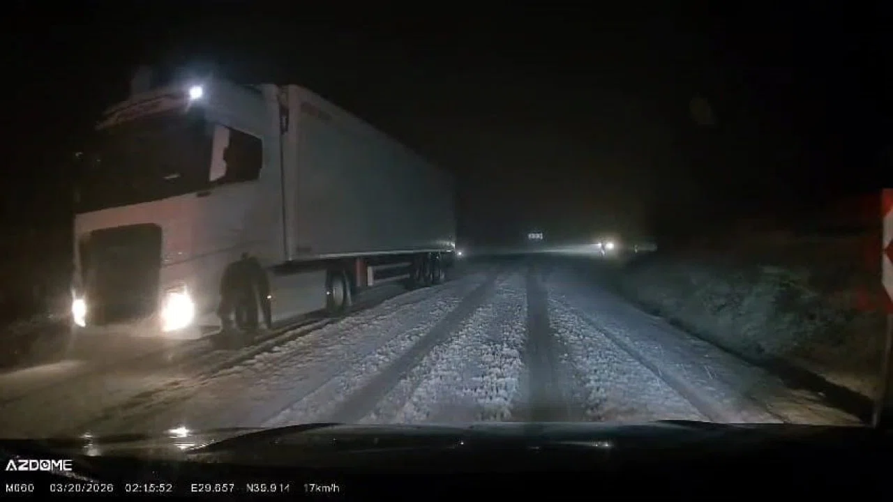 Kar yağışının etkisini sürdürdüğü karayolunda, güvenlik amacıyla ağır tonajlı araçların geçişine ise izin verilmedi.
