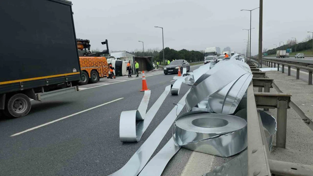 Edinilen bilgilere göre, sürücülüğünü Ferhat Omaç’ın yaptığı sac yüklü kamyon, TEM Otoyolu Hadımköy bağlantı yolundaki virajı döndüğü sırada kontrolden çıkarak yan yattı. Araçta bulunan rulo halindeki saclar yola savrulurken, otoyolda ulaşım tamamen durdu.