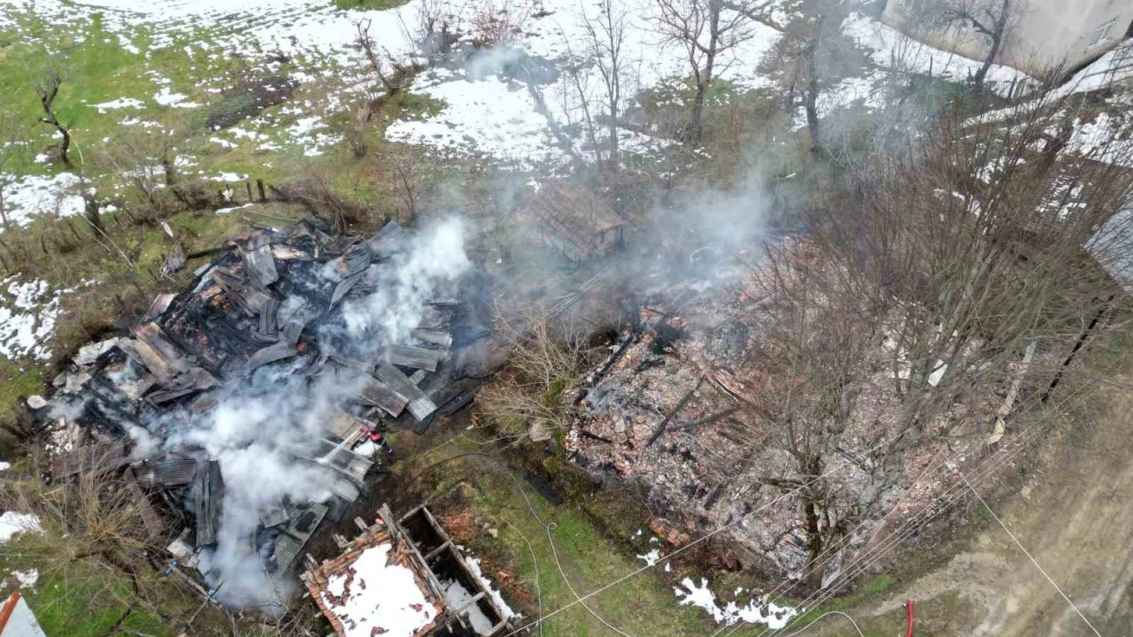 Kastamonu’nun Bozkurt ilçesine bağlı Keşlik köyünde sobadan çıktığı tahmin edilen yangında iki ev ile bir ambar kullanılamaz hale geldi.