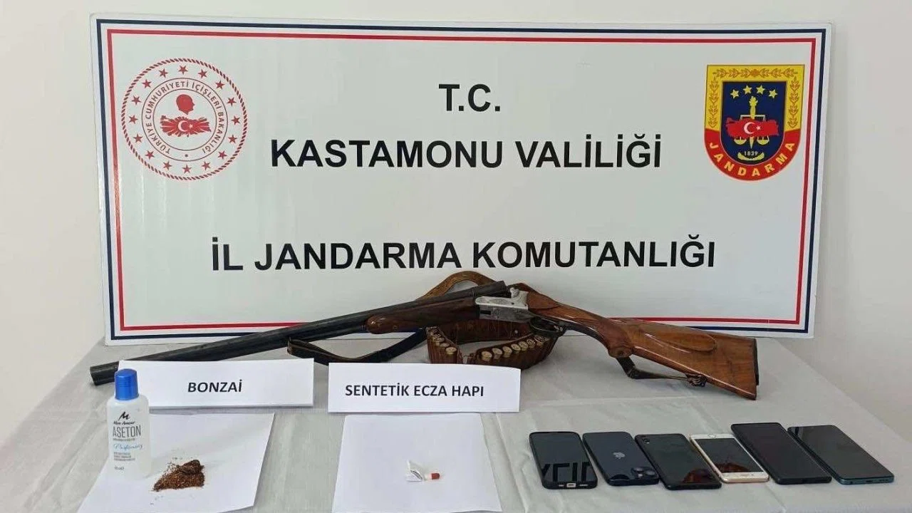 Edinilen bilgiye göre, Kastamonu İl Jandarma Komutanlığı ekipleri tarafından "narkotik suçlarla mücadele" kapsamında teknik ve fiziki takibin ardından operasyon gerçekleştirildi. Operasyonlarda 12 gram sentetik kannabinoid katkılı tütün, 130 mililitre sentetik kannabinoid katkılı sıvı madde, 9 adet sentetik ecza, 6 adet lyrica sentetik hap, 1 adet uyuşturucu kullanma aparatı, 1 adet ruhsatsız av tüfeği ve 18 adet av tüfeği fişeği ele geçirildi.