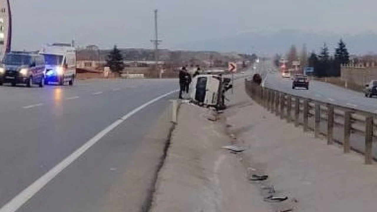 Afyonkarahisar’da kontrolden çıkarak orta refüje devrilen hafif ticari araçta 3’ü çocuk 5 kişi yaralandı.