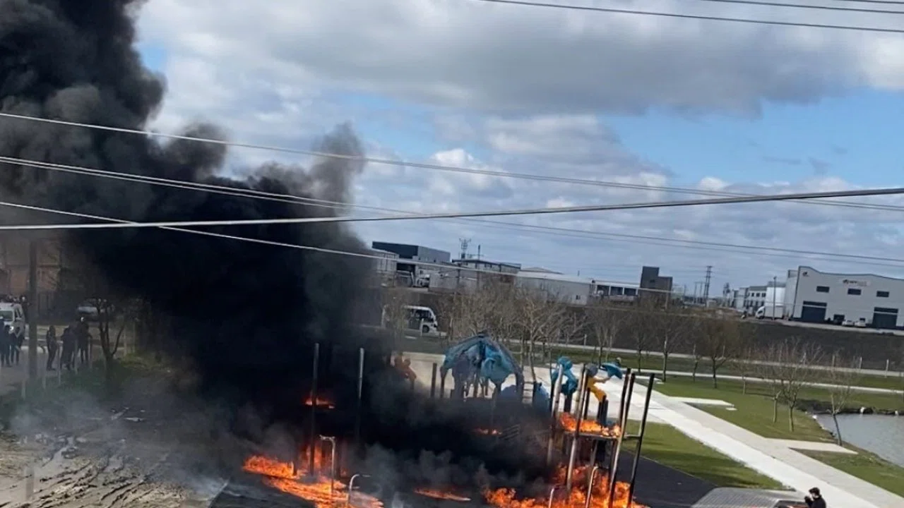 Tekirdağ’ın Ergene ilçesinde çocukların yaktığı ateş nedeniyle parktaki oyun grupları alev alev yandı.