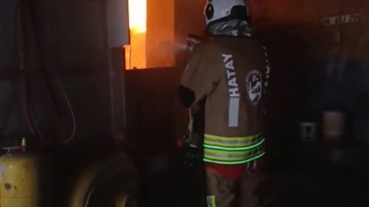 Hatay’da alevlere teslim olarak yanan iş yeri kullanılmaz hale geldi.