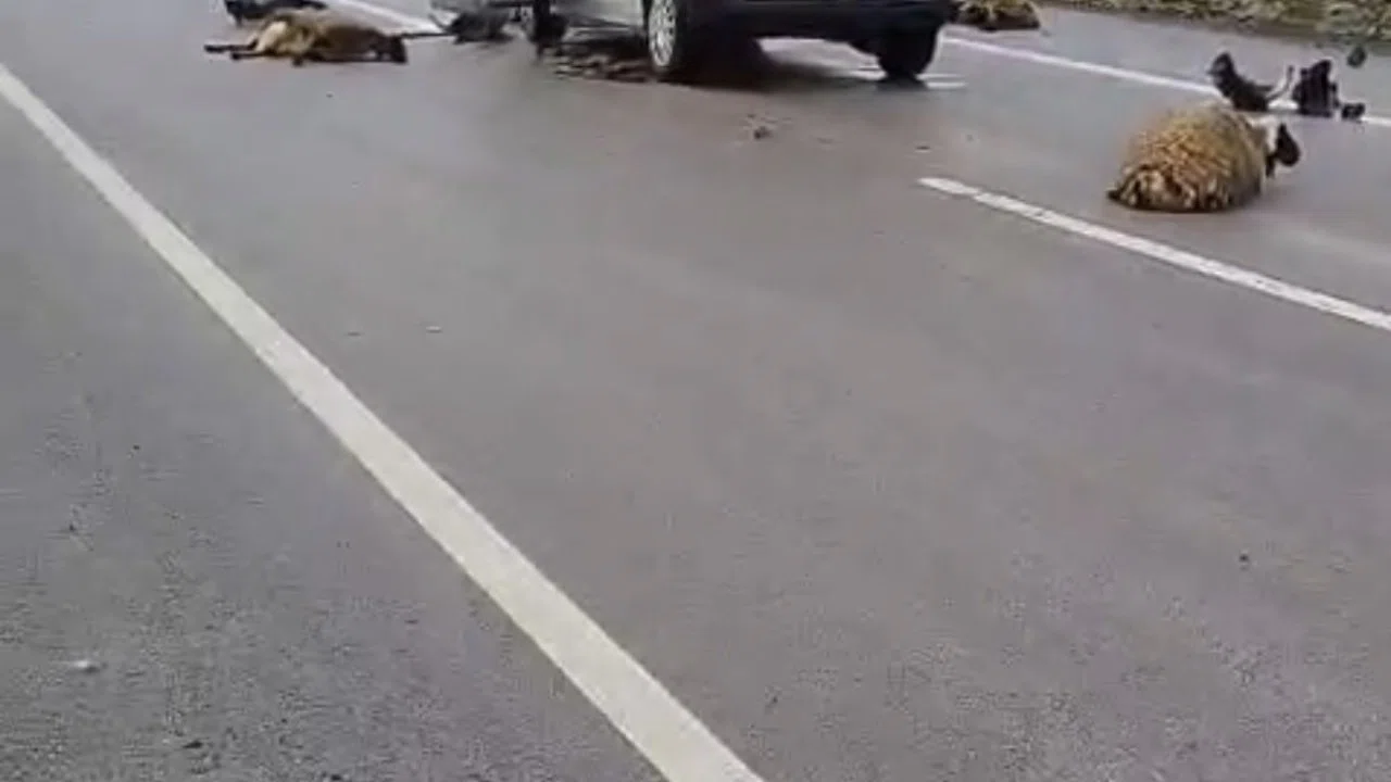 Şanlıurfa’nın Siverek ilçesinde hafif ticari aracın yolun karşısına geçen sürüye çarpması sonucu 10 koyun telef oldu.