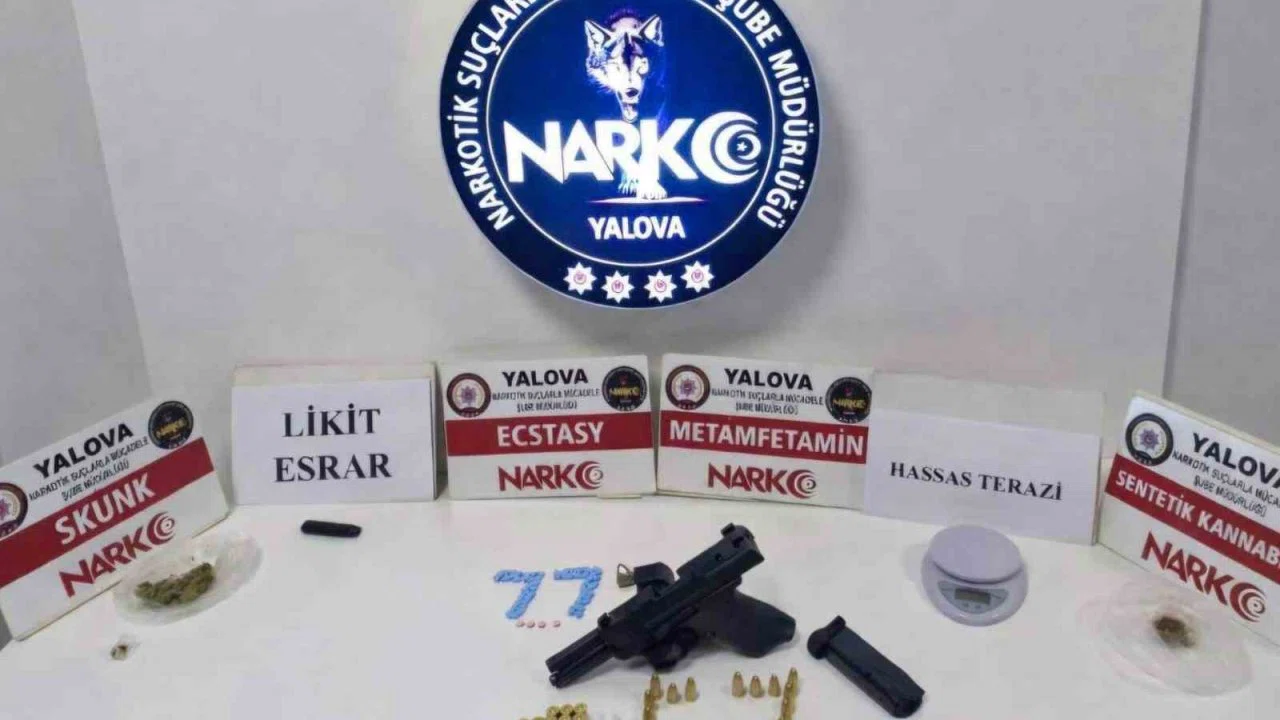 Alınan bilgiye göre, Yalova Emniyeti İstihbarat ve Narkotik Suçlarla Mücadele Şube müdürlüklerince risk-analiz sonucu kent merkezinde gerçekleştirilen operasyonlarda ve İstanbul ilinde yakalattırılan şahıslardan, toplam 242,75 gram çeşitli türlerde uyuşturucu ve uyarıcı madde, 64 adet uyuşturucu hap, hassas terazi, 9 mm çapında tabanca, 1 şarjör ve 39 adet fişek ele geçirildi.