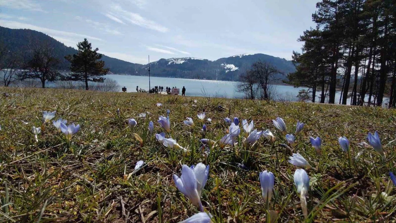 Bolu’nun önemli turizm merkezlerinden olan Abant Gölü Milli Parkı’nda hava sıcaklıklarının artmasıyla birlikte karlar erimeye başladı. Karların erimesiyle baharın müjdecisi olarak bilinen çiğdem çiçekleri de ortaya çıktı.