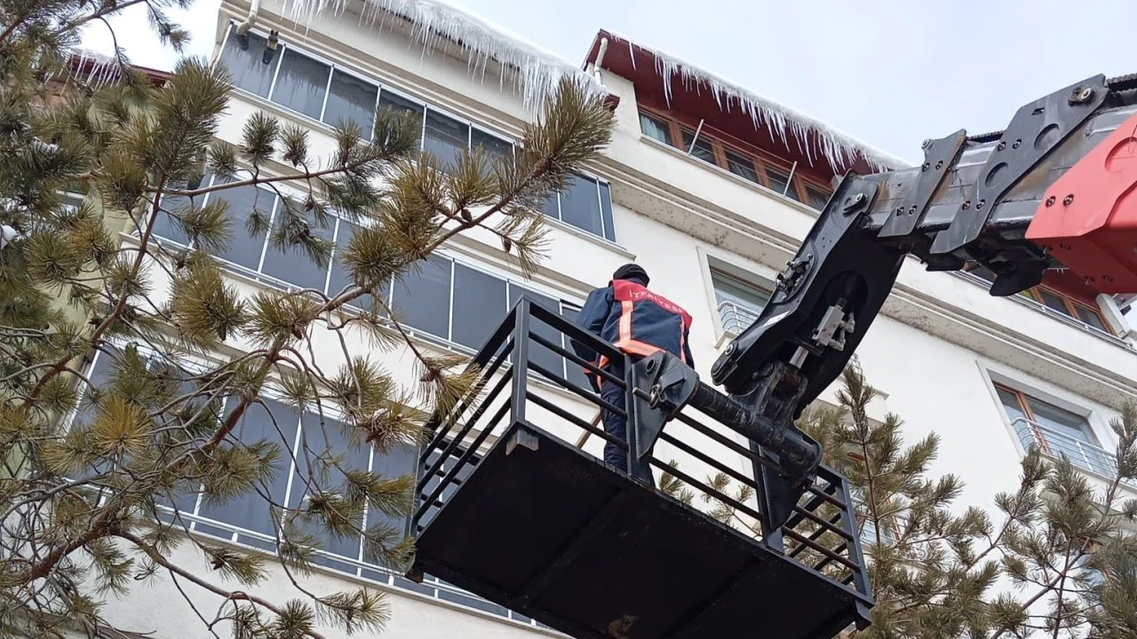 Soğuk hava şartları nedeniyle meydana gelen ve özellikle yayalar için tehlike oluşturan buz sarkıtları, ekiplerin kontrollü müdahalesiyle kırılarak kaldırıldı. Çalışmaların, vatandaşların can ve mal güvenliğinin korunması amacıyla riskli bölgelerde öncelik verilerek yürütüldüğü bildirildi.