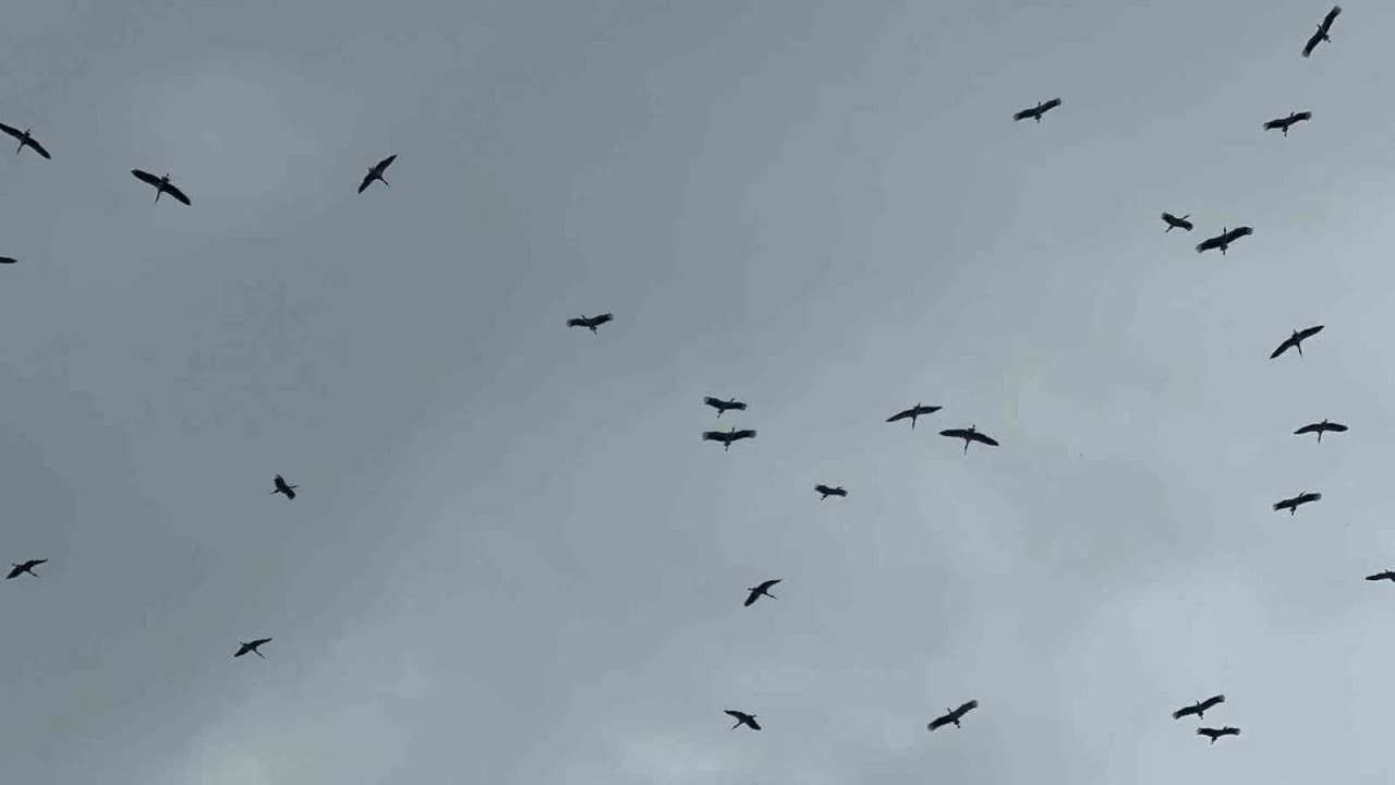 Bursa’ya Kestel ilçesi tarafından Gölbaşı üzerinden giren leylek sürüsü, yağmura rağmen yoluna devam etti.