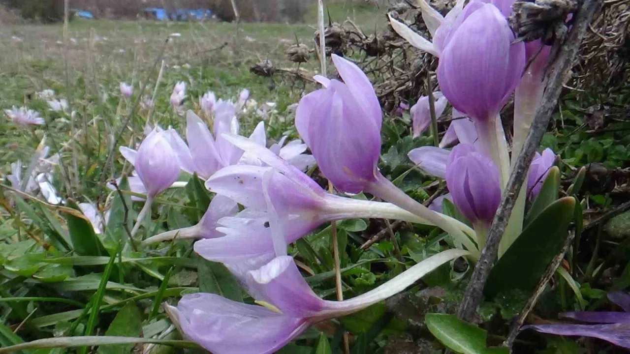 Bolu’nun Mudurnu ilçesinde kış aylarının son günlerinde baharın müjdecisi olarak bilinen çiğdemler çiçek açtı.