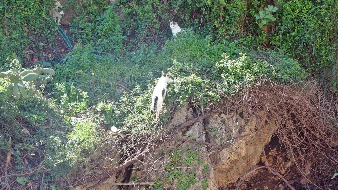 Antalya’da 30 metrelik falezlerin uçurum kısmına çıkan kediler, çevredeki vatandaşları tedirgin etti. Mahsur kaldıkları ihbar edilen kediler, itfaiye erleri kurtarma operasyonuna hazırlanırken herhangi bir yardım olmadan güvenli alana çıktı.