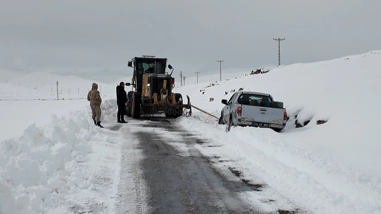 Iğdır’da etkili olan kar yağışı nedeniyle kapanan köy yollarını açmak için ekipler çalışmalarını sürdürüyor.