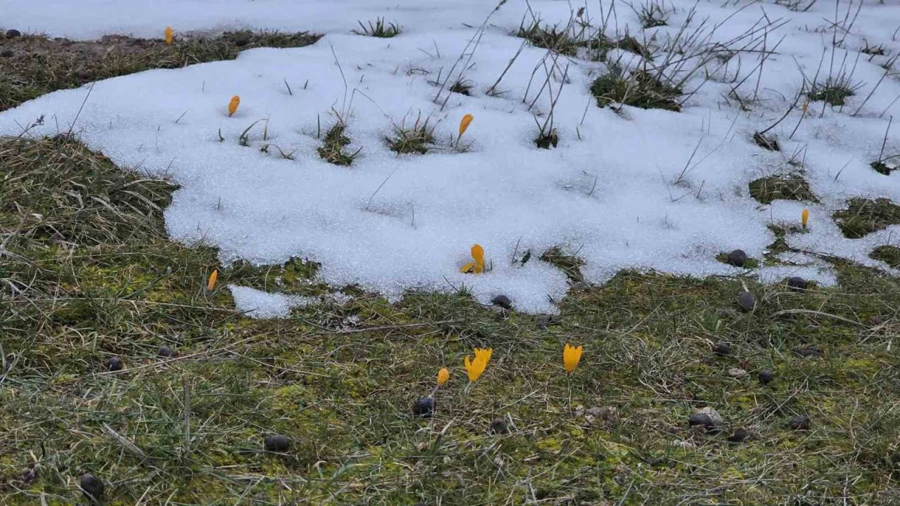 Kütahya’nın Radar bölgesinde kar ve çiğdemlerin aynı karede görüntülenmesi, ilginç manzaralar oluşturdu.