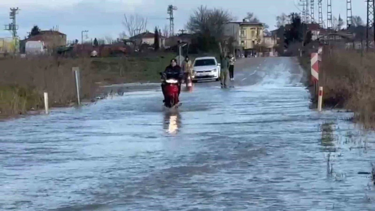 Edirne’nin Meriç ilçesinde, Meriç Nehri’nin taşması sonucu Küplü Beldesi ile Adasarhanlı arasındaki karayolu sular altında kaldı.