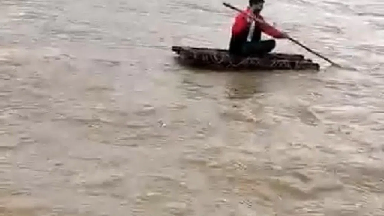 Mardin’de yağış sonrası suyla dolan deredeki sal keyfi cep telefonu kamerasına yansıdı.