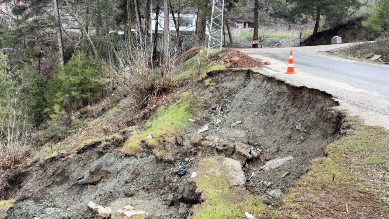 Osmaniye’nin Bahçe ilçesinde yoğun yağış nedeniyle yolda çökme meydana geldi.