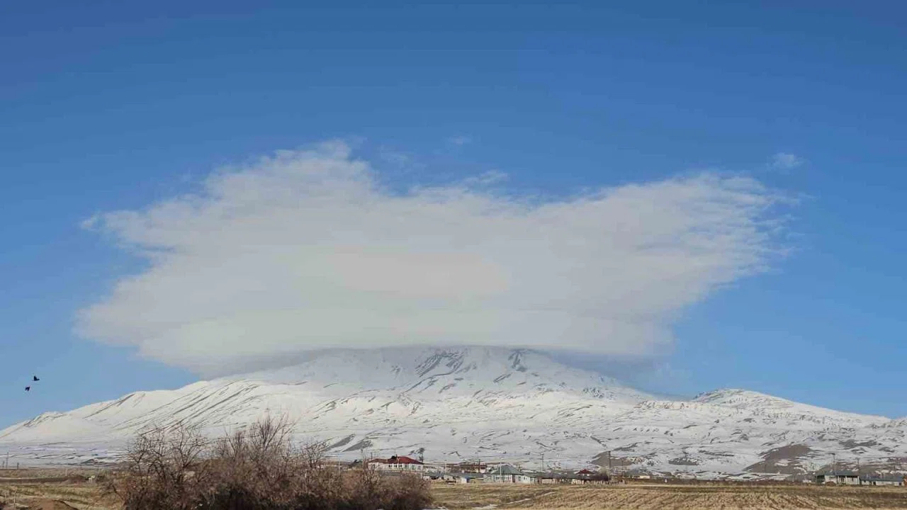 Bitlis’in Adilcevaz ilçesi sınırlarında bulunan Türkiye’nin üçüncü yüksek zirvesi olan Süphan Dağı semalarında mercek (lentiküler) bulutu oluştu.