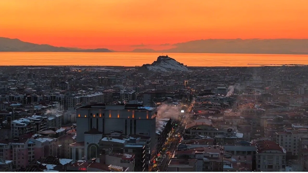 Doğası ve tarihi dokusuyla her mevsim ziyaretçilerini kendine hayran bırakan Van, akşam saatlerindeki gün batımı manzarasıyla kartpostallık görüntüler sundu. Dünyanın en büyük sodalı gölü olan Van Gölü’nün berrak suları üzerinde gün batımı renk skalasıyla seyri doyumsuz manzaralar oluşturdu.