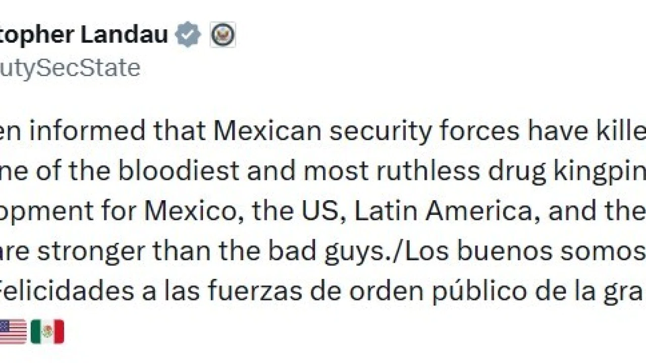 ABD Dışişleri Bakanı Yardımcısı Christopher Landau, Meksika’daki Jalisco Yeni Nesil Karteli (CJNG) lideri "El Mencho" lakaplı Nemesio Oseguera’nın düzenlenen askeri operasyon sırasında öldürülmesi hakkında, "Bu Meksika, ABD, Latin Amerika ve dünya için harika bir gelişme" açıklamasında bulundu.