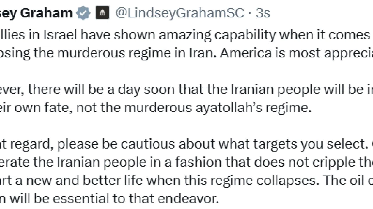 ABD’li Cumhuriyetçi Senatör Lindsey Graham, İsrail’in İran’ın petrol tesislerine yönelik saldırılarını eleştirerek, "Lütfen seçeceğiniz hedefler konusunda dikkatli olun. Amacımız, İran halkını, bu rejim çöktüğünde yeni ve daha iyi bir hayata başlama şanslarını sekteye uğratmayacak bir şekilde özgürlüğüne kavuşturmaktır. İran’ın petrol ekonomisi bu çaba kapsamında hayati önem taşıyacaktır" açıklamasında bulundu.