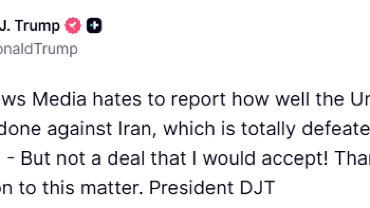 ABD Başkanı Donald Trump, İran’ın tamamen yenilgiye uğradığını ve kendileriyle bir anlaşma yapmak istediğini öne sürerek, "Ancak bu, benim kabul edeceğim türden bir anlaşma değil" açıklamasında bulundu.