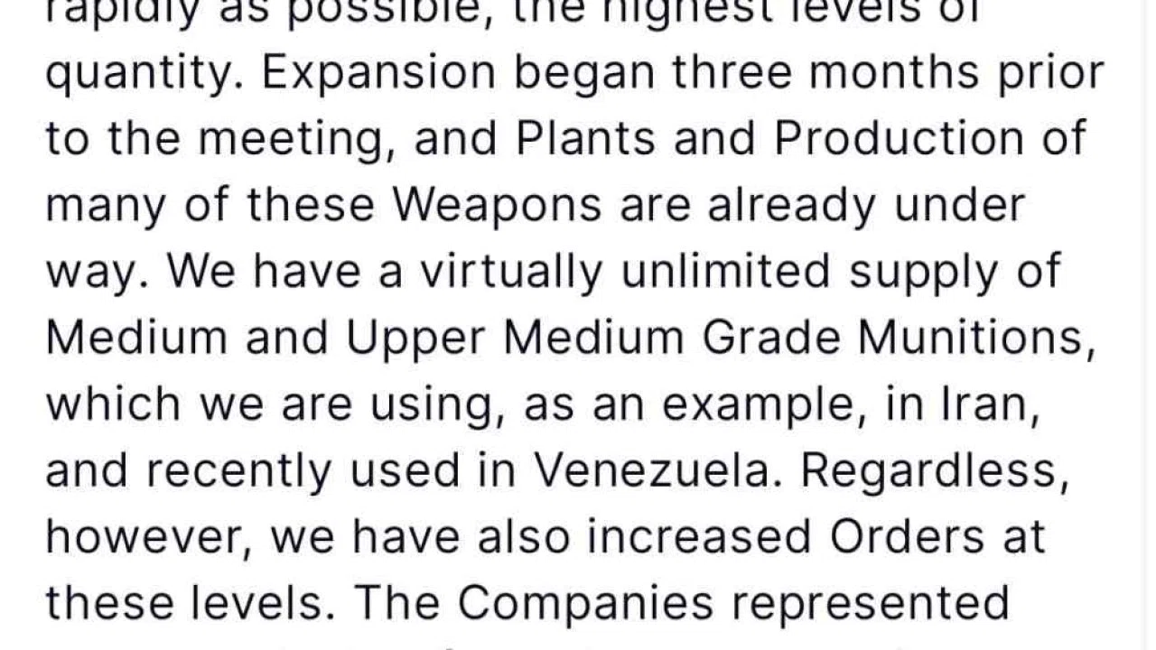 ABD Başkanı Donald Trump, silah üreticisi şirketlerin yöneticileri ile yaptığı toplantının ardından, "Şirketler, mümkün olan en kısa sürede en yüksek üretim miktarına ulaşmak istediğimiz ’gelişmiş silahların’ üretimini dört katına çıkarmayı kabul ettiler" açıklamasında bulundu.