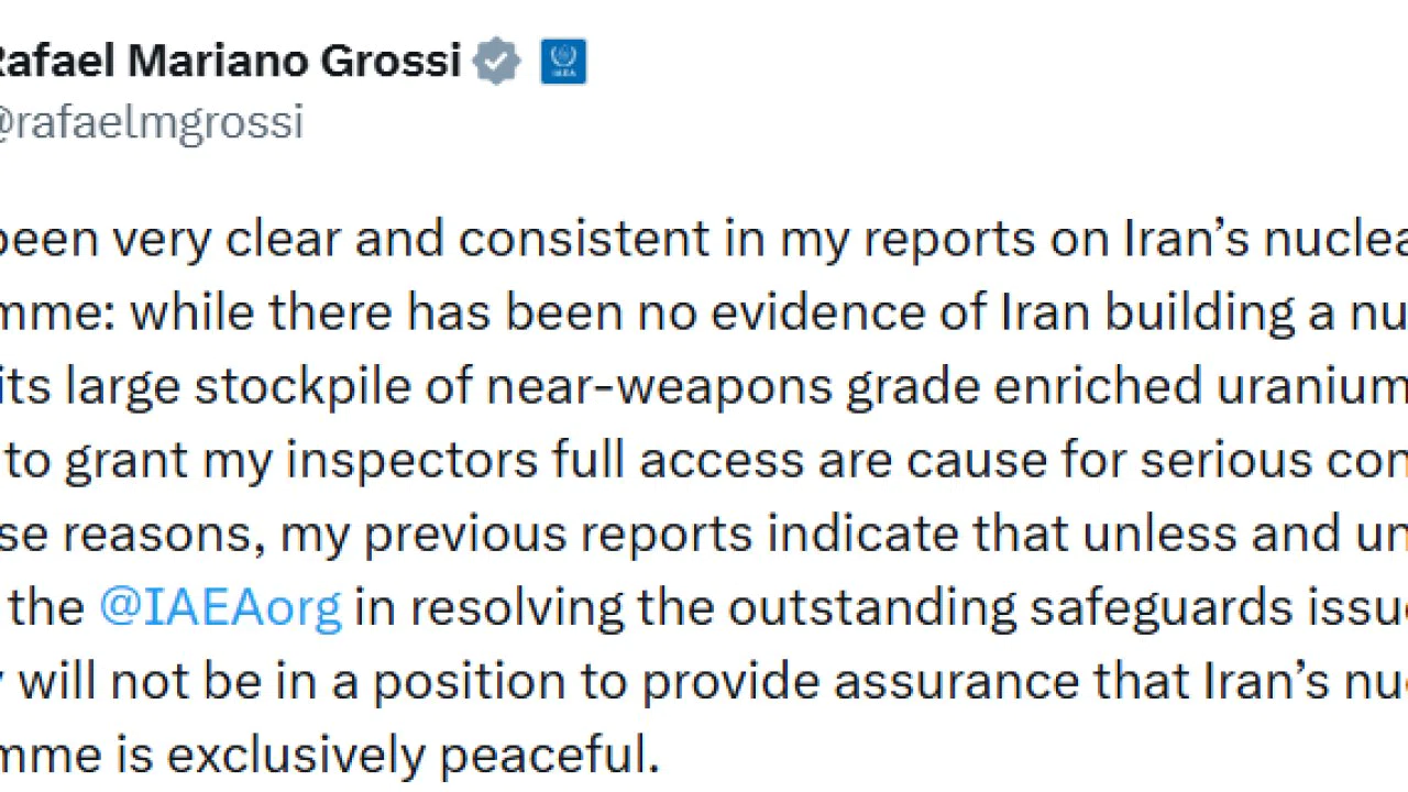 Uluslararası Atom Enerjisi Ajansı (UAEA) Başkanı Rafael Grossi, İran’ın nükleer bomba ürettiğine dair bir kanıtın bulunmadığını yineleyerek, "Buna rağmen,