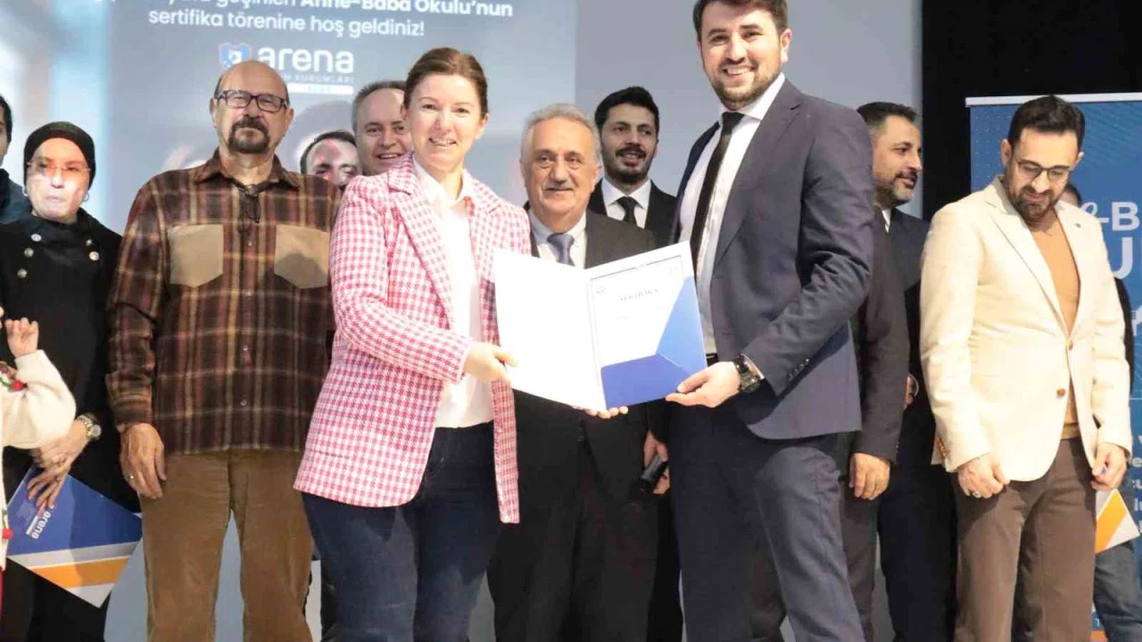 Arena Eğitim Kurumları’nın, Bursa Uludağ Üniversitesi (BUÜ) iş birliğiyle hayata geçirdiği "Anne Baba Okulu" projesi, ikinci dönemini başarıyla tamamladı. 10 hafta boyunca uzman akademisyenlerden eğitim alan ebeveynler, Arena Okulları Beşevler Kampüsü’nde düzenlenen törenle sertifikalarına kavuştu.