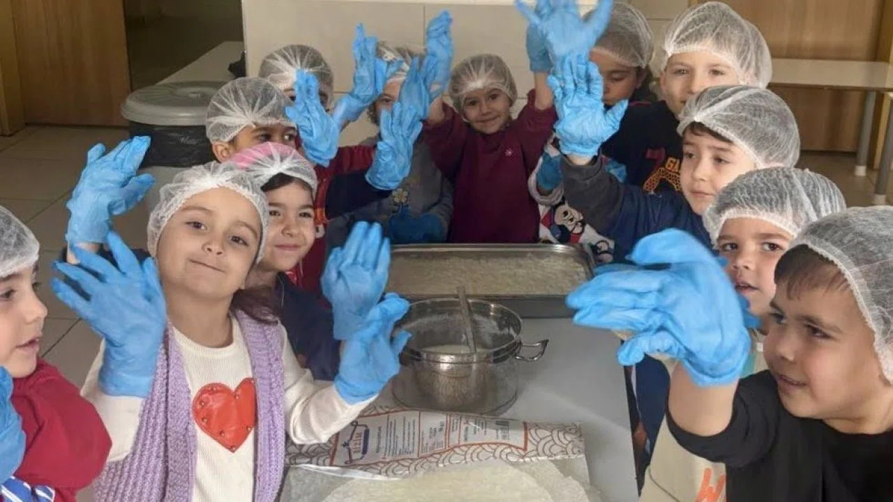 Minik öğrenciler, öğretmenlerinin rehberliğinde sütün şekerle buluşmasından güllaç yapraklarının ıslatılmasına kadar her aşamada aktif rol aldı. "Minicik eller ve sevgi dolu yürekler" sloganıyla gerçekleştirilen etkinlikte, çocuklar üretmenin ve mutfak kültürümüzün bir parçası olmanın mutluluğunu paylaştı.
