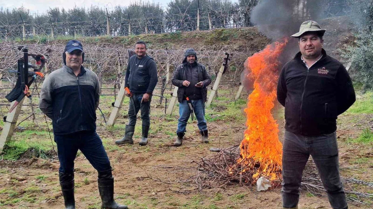 Hava sıcaklıklarının sıfırın altına kadar düştüğü sabah saatlerinde önce ısınan işçiler, ardından bağların budamasına başlıyor. Gün içerisinde soğuğu yeniden hissettiklerinde ise budadıkları çubukları yakarak çalışmalarına devam ediyorlar.
