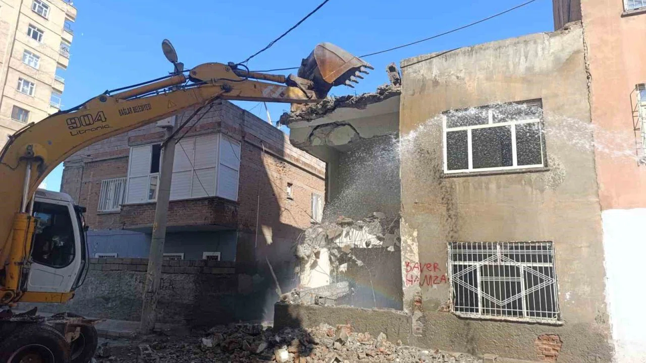 Diyarbakır’ın Bağlar ilçesinde mahalle sakinleri için tehlike oluşturan metruk bina kontrollü şekilde yıkıldı.