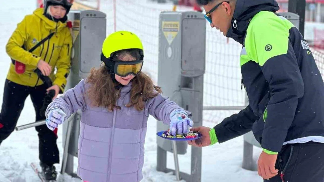 Erciyes Kayak Merkezi yöneticileri de bayram tatili için Erciyes’e gelen misafirlerine sürpriz yaparak pistler üzerinde bayramlarını kutladı ve şeker ikramında bulundu.