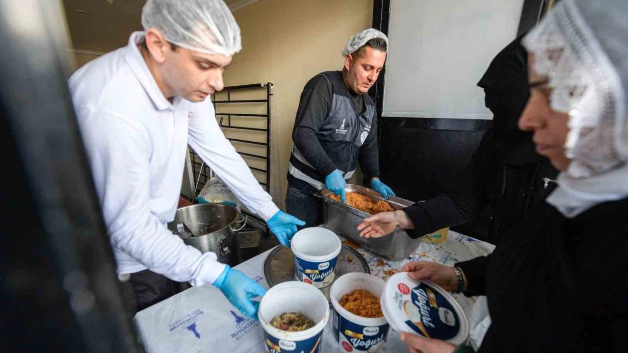 Ramazan ayında birlik ve dayanışma ruhunu büyüten İzmir Büyükşehir Belediyesi, yerinde hizmet anlayışı doğrultusunda kentin farklı noktalarında kurduğu Danışma ve Dayanışma Noktaları aracılığıyla ihtiyaç sahibi hanelere her gün 15 bin kişilik ücretsiz iftar yemeği ulaştırıyor.