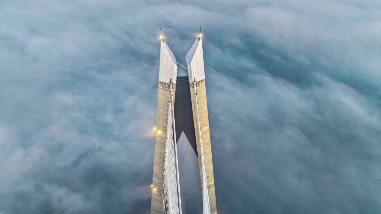 İstanbul’un simge yapılarından Yavuz Sultan Selim Köprüsü, gün doğumu ve sisin oluşturduğu eşsiz manzarayla adeta görsel şölen sundu. Sabahın ilk ışıklarıyla birlikte köprü çevresini saran yoğun sis, ortaya mest eden görüntüler çıkardı.