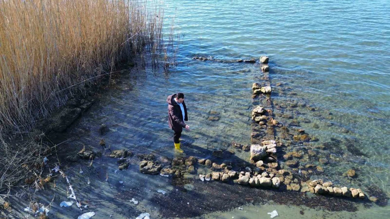 Göl sularının çekilmesiyle tamamen görünür hâle gelen kalıntıların, İznik sahil bandında kumsalın hemen yanında yer aldığı görülürken, yapıyı fark eden ekip heyecan yaşadı.