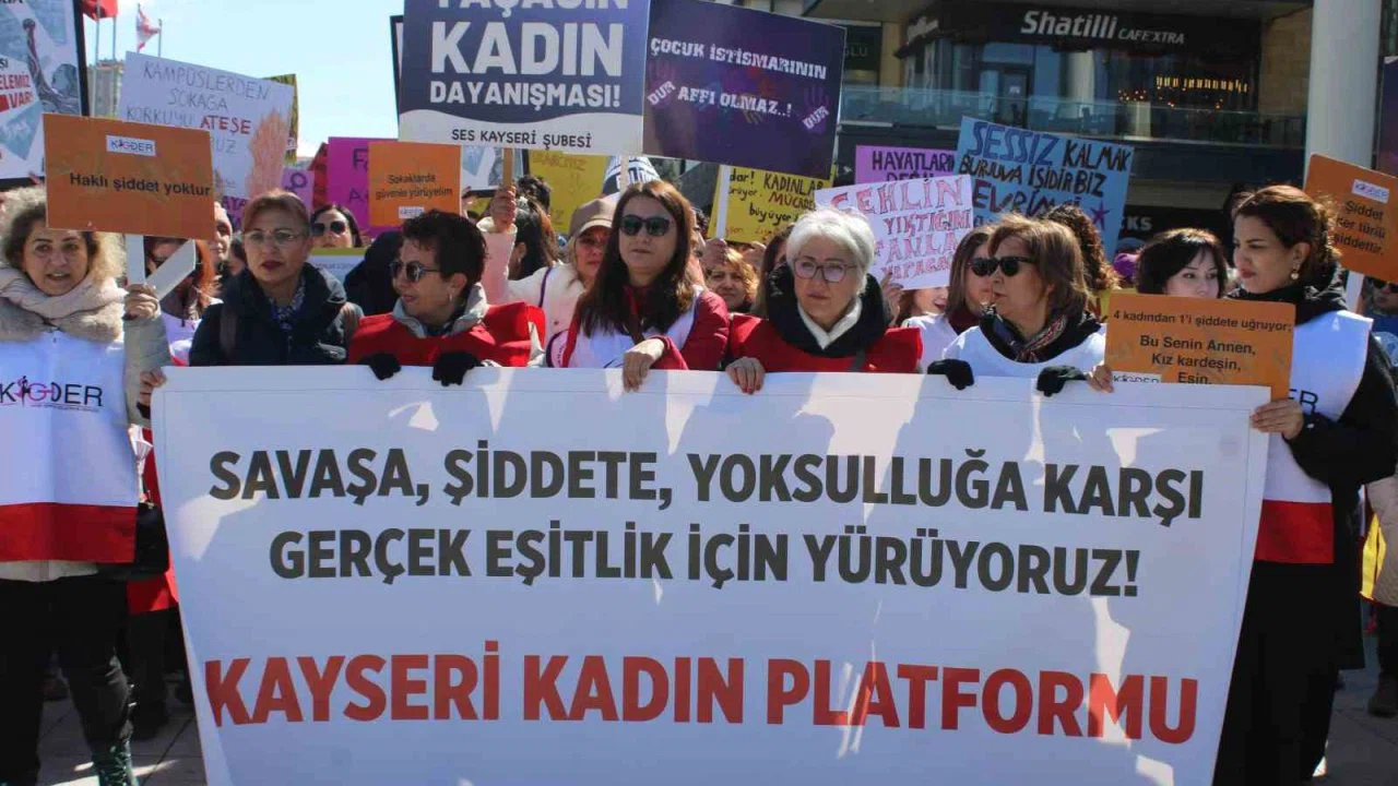 Kayseri’de 8 Mart Dünya Kadınlar Günü dolayısıyla Kadınlar Platformu tarafından kadın hakları için yürüyüş düzenlendi.