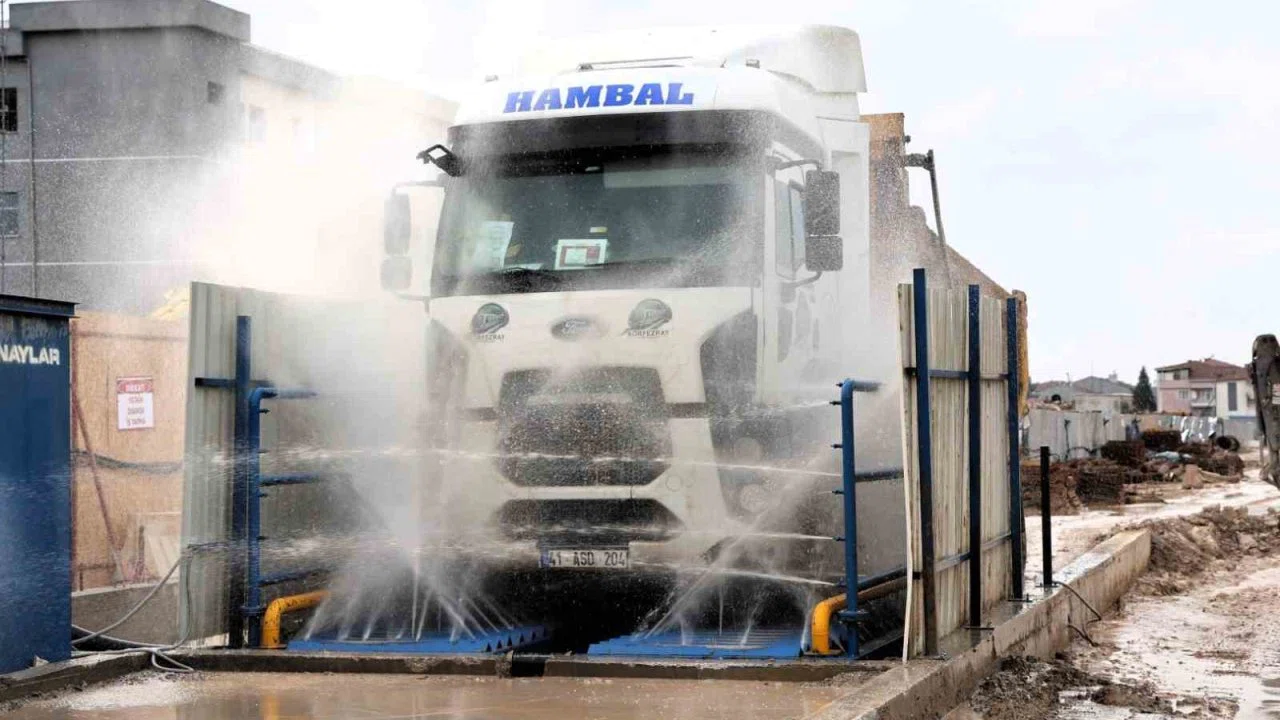 Kocaeli’de yapımı devam eden Körfezray Metro Projesi kapsamında, inşaat alanından çıkan araçların ana yollara çamur ve toz taşımasını engellemek amacıyla özel yıkama üniteleri kuruldu.