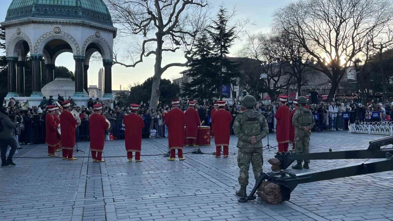 İstanbul Sultanahmet Meydanı’nda Osmanlı geleneği olan ilk iftar topu atışı yapıldı. İftar öncesi mehter takımı vatandaşlara konser verdi.