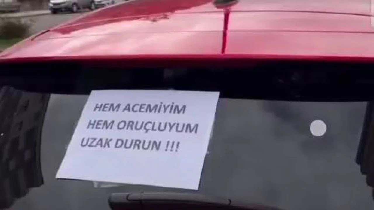 Diyarbakır’ın Kayapınar ilçesinde bağlı Talaytepe Mahallesi’nde acemi bir sürücünün aracın arkasına yazdığı yazı izleyenleri hem güldürdü hem de düşündürdü. Sürücü A4 kağıdına yazdığı ve aracın arkasına astığı ’Hem acemiyim hem oruçluyum uzak durun’ yazısıyla dikkatleri üzerine çekti. O anlar görenlerin yüzlerinde tebessüm oluşturdu.