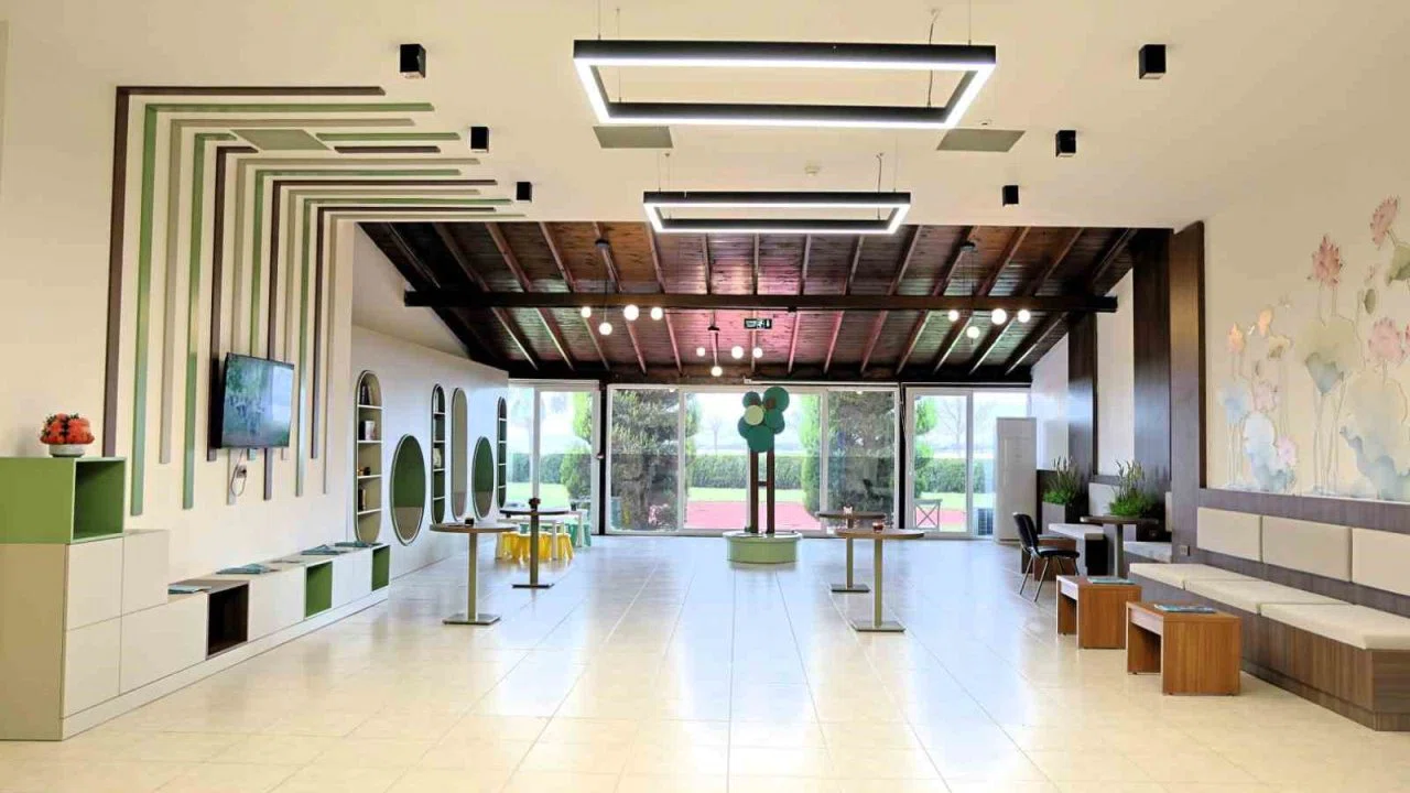 Tesiste ayrıca, kadınların spor salonundan aktif olarak yararlandığı anlarda çocuklarının güvenli şekilde vakit geçirebilmesi için "anne yanı" sınıfları oluşturuldu.
