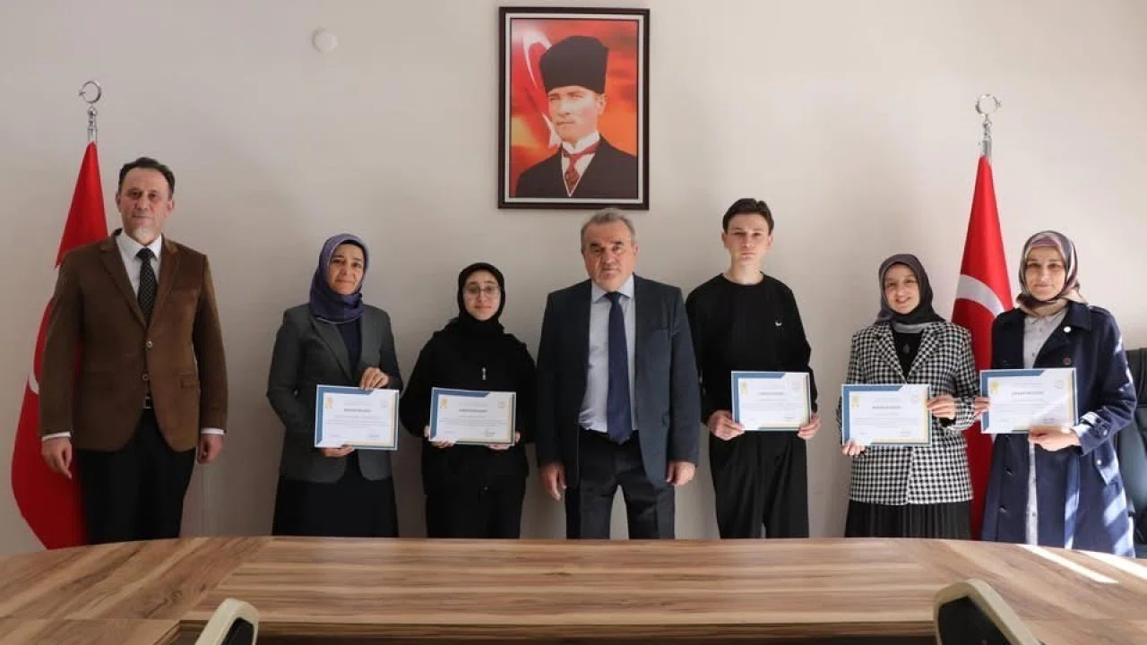 Kaymakam Adem Öztürk, Fatih Sultan Mehmet İmam Hatip Ortaokulu ve Bozüyük Anadolu İmam Hatip Lisesi öğretmen ve il birinci olan öğrencileri makamında kabul ederek başarı belgelerini takdim etti. İlçe Milli Eğitim Müdürü Servet Çetinkaya’nın da hazır bulunduğu kabulde Kaymakam Adem Öztürk, öğrencilere başarılar dilerken, emeği geçen öğretmenler, okul idarecileri ve anne babalarına teşekkür etti.
