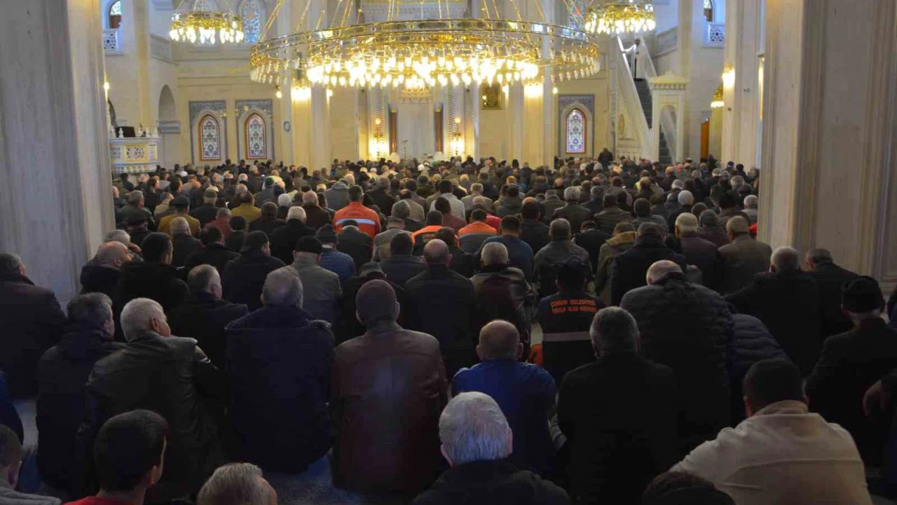 Çorum’da Ramazan ayının son cuma namazı için vatandaşlar Akşemseddin Camii’nde yoğunluk oluşturdu. Yoğunluk sebebiyle camiye sığmayan vatandaşlar avluda namaz kıldı.