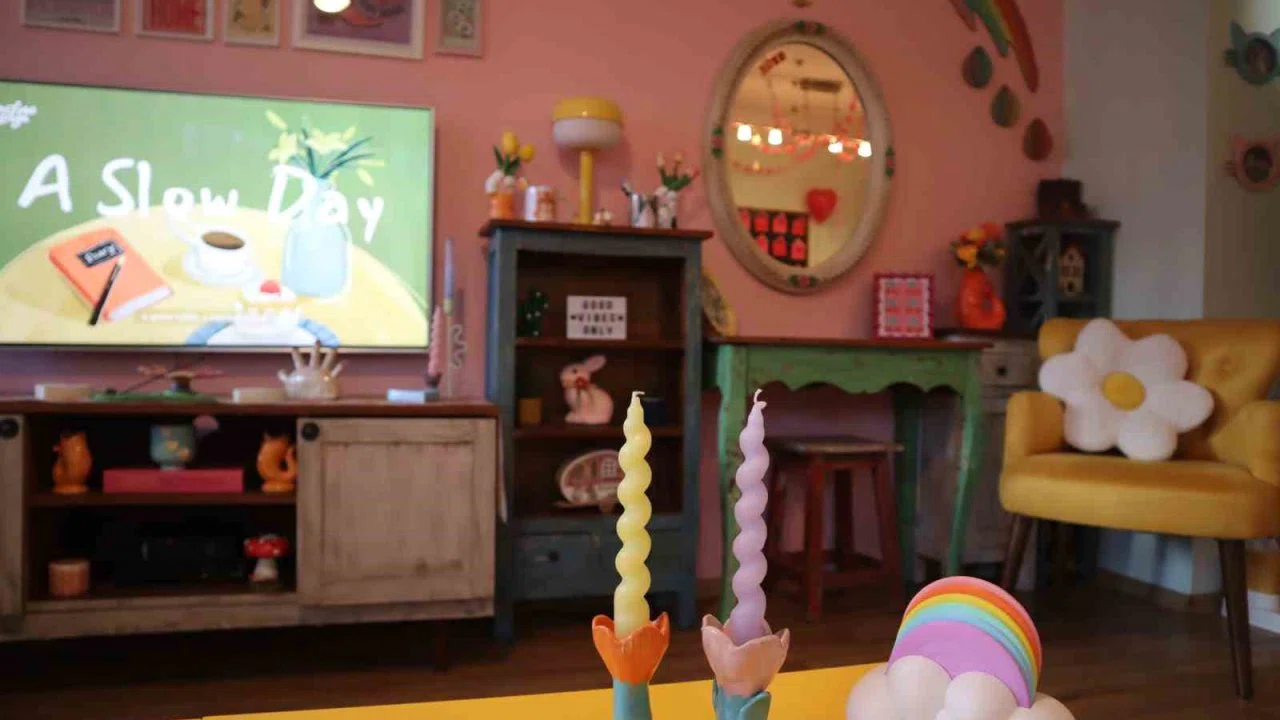 İstanbul’da yaşayan tasarımcı ve sanatçı Buğçe İçiuyan, baştan sona renkli detaylarla tasarladığı eviyle dikkat çekiyor. Binlerce farklı figür ve objenin bir araya geldiği ev, her köşesinde farklı bir temayı barındırıyor.