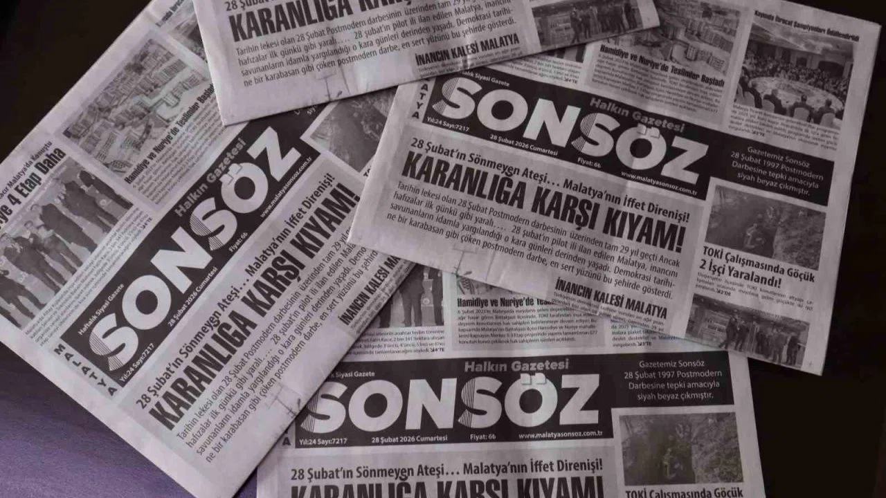 Türkiye’nin demokrasi tarihine post-modern darbe olarak geçen 28 Şubat’ın yıl dönümünde, Malatya Sonsöz Gazetesi, siyah-beyaz baskıyla çıktı.