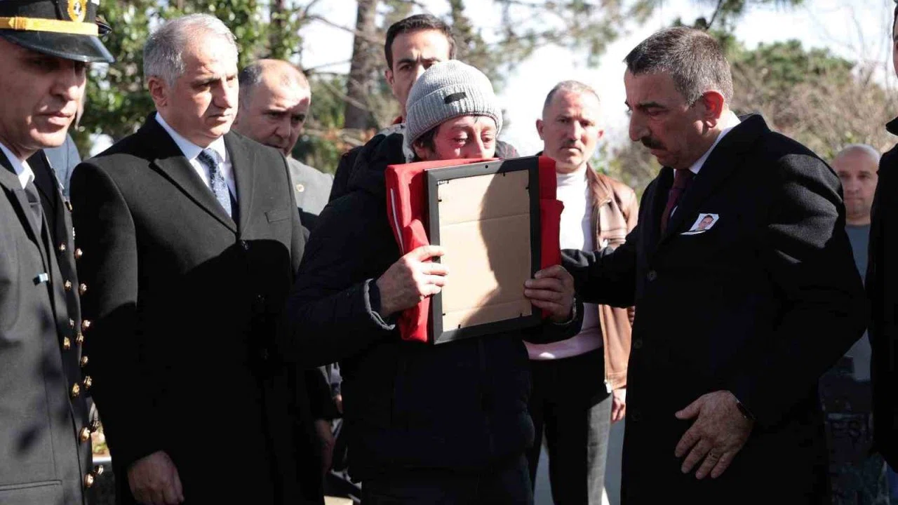 Vali Hacıbektaşoğlu, törende Kalyoncu’nun ailesine taziyelerini bildirdi.