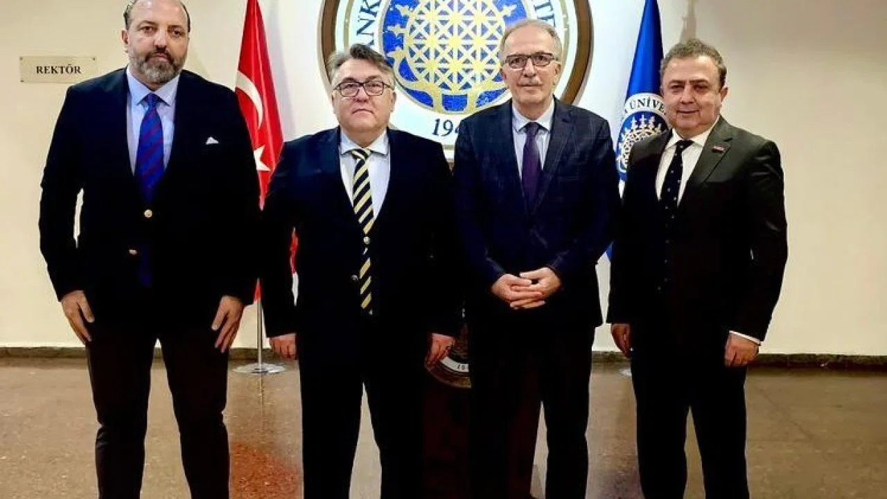 Ankara Üniversitesinde gerçekleşen nezaket ziyaretinde Rektör Prof. Dr. İsmail Hakkı Özölçer’e, BEUN Hastanesi Başhekimi Prof. Dr. Burak Bahadır ile Zonguldak Teknopark Genel Müdürü Doç. Dr. Ferdi Kesikoğlu eşlik etti.